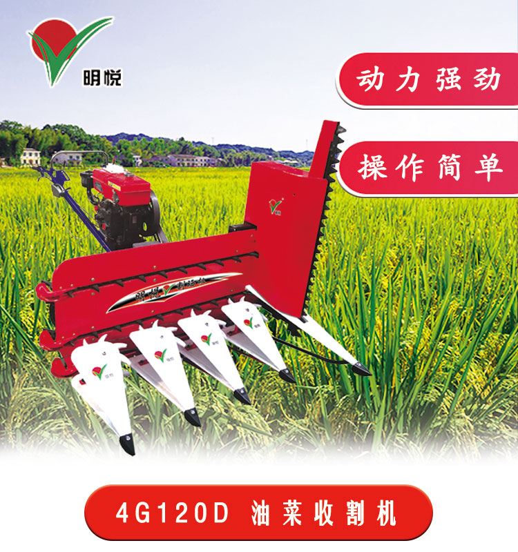 油菜割曬機大全圖片 針對丘陵,山區,小幅地油菜收割的需要,研制了小型手持式履帶油菜割曬機,具有較強的越障能力,對復雜的野外作業條件適應性強,割草運輸方便,并整齊地鋪設。均勻地操作速度和殘茬高度均設置為多級調整,可以根據油菜密度,高度和殘茬高度進行實時調整,以提高割曬機的適應性和運行質量。除用于油菜收割之外,該機器還可用于水稻,高地大麥,蠶豆,高粱,芝麻和其他農作物的收割作業。