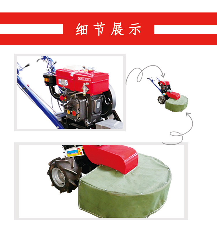 小型割草機消除了由于電力不足而造成的頻繁的電收割機堵塞,使用戶收割更加順暢。機器收割干凈,放置整齊。割草機由汽油發動機,變速桿和割草機盤組成。